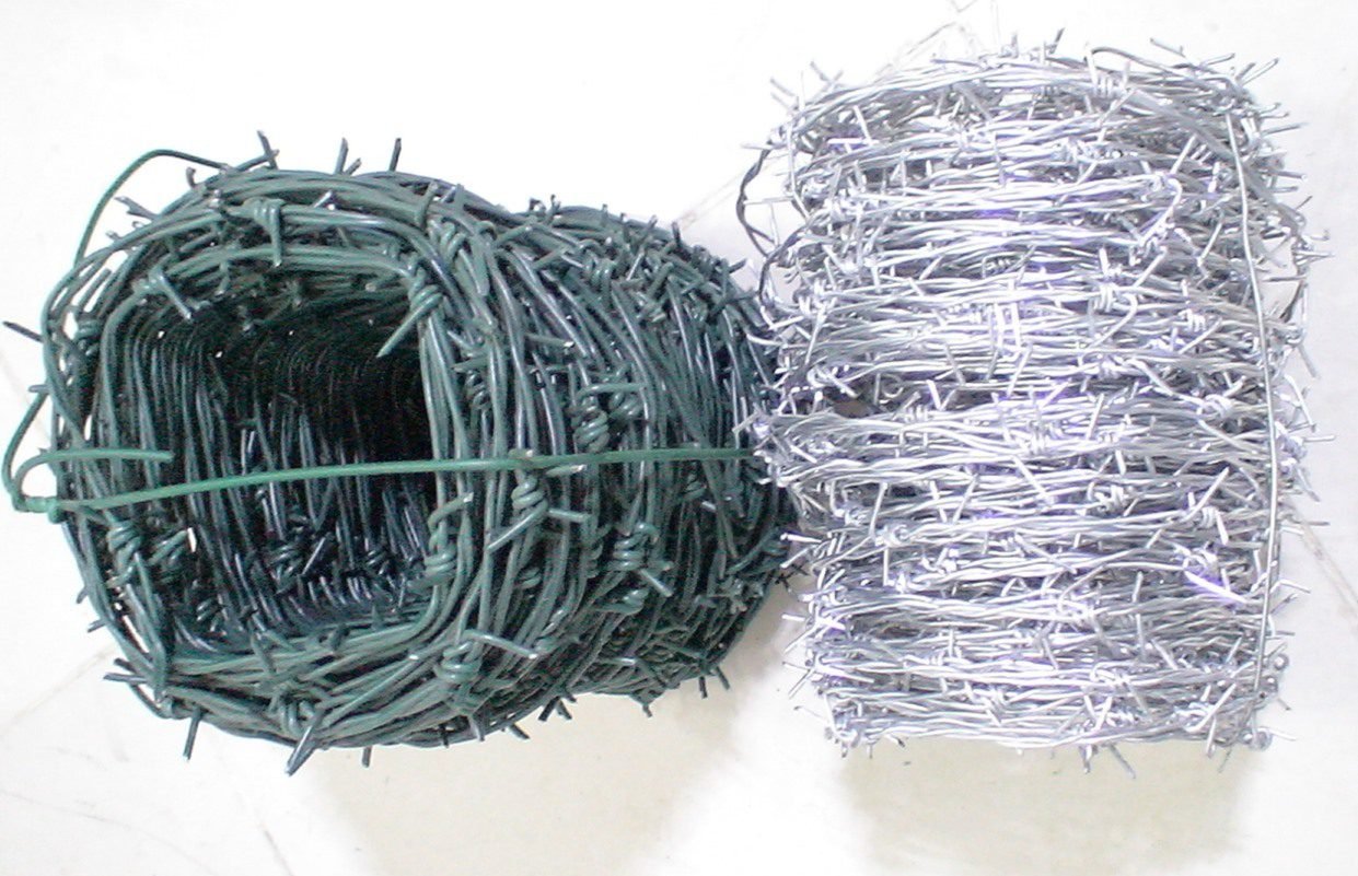 Barbed wire is used for various security fencing and barriers. It can be laid directly on the ground, mounted on the top of fence or in rows as an independent barrier. To prevent corrosion, barbed wire has a zinc coating. The barbed wire consists of barb wire and line wire. The wire diameter of line wire is larger. The line wire can have one wire or two wires. The barb wires are braided with a system of constant torsion around line wire. One barb wire forms two spikes and two pieces of wire-four spikes. The sharpened spikes are protective elements of barbed wire.