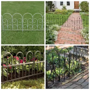 These no dig metal fence panels can be extended to different shapes according to your special uses of this path edging fence, one straight line, [L”, [O” or zigzag shape.